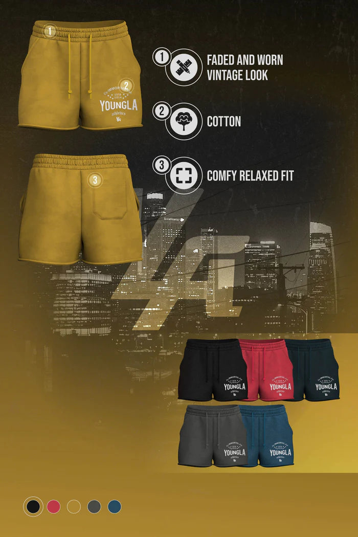DISEÑO: LOS SHORTS IMMORTAL INCORPORAN UNA ESTÉTICA VINTAGE DE CULTURISMO, TRANSPORTÁNDOTE A LA ÉPOCA DORADA DEL FITNESS. CONFECCIONADOS CON UNA MEZCLA DE ALGODÓN Y POLIÉSTER, ESTOS SHORTS OFRECEN UN AJUSTE CÓMODO Y TRANSPIRABLE PARA USAR TODO EL DÍA. LOS COLORES LAVADOS AÑADEN UN TOQUE NOSTÁLGICO, DÁNDOLES UN ASPECTO DESGASTADO.