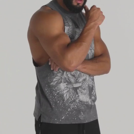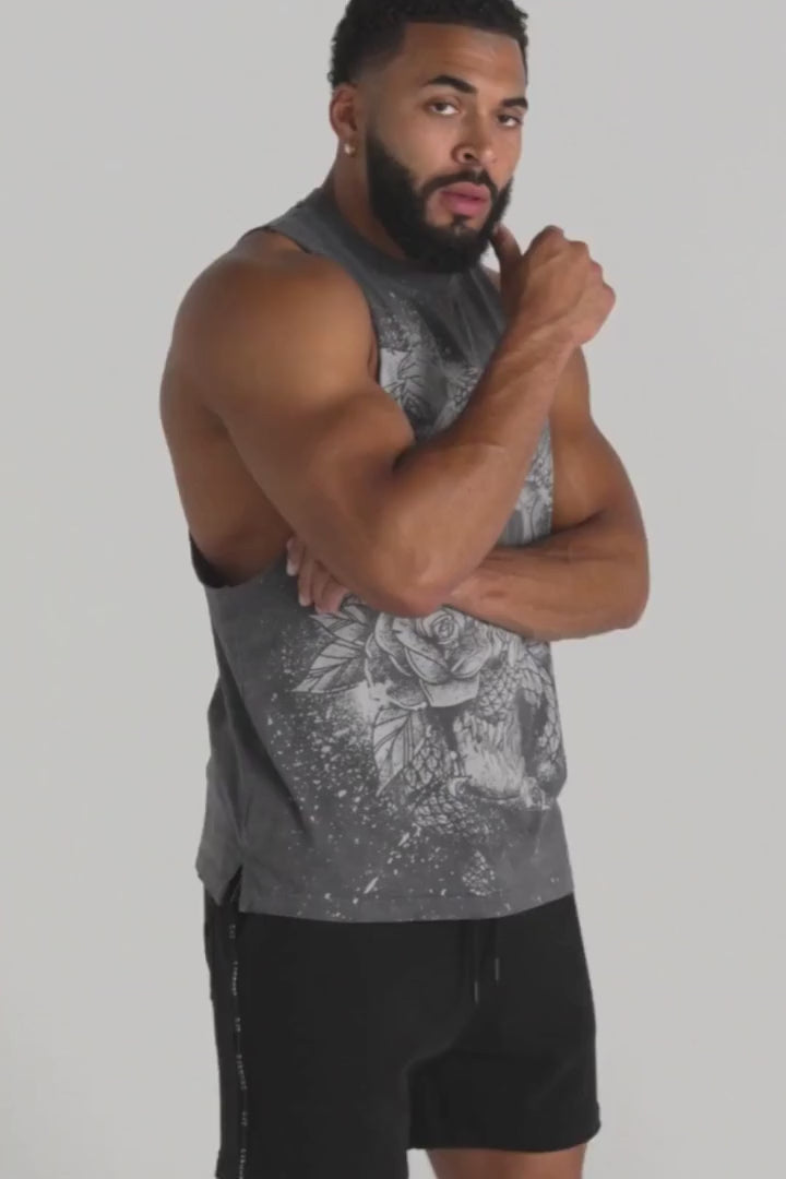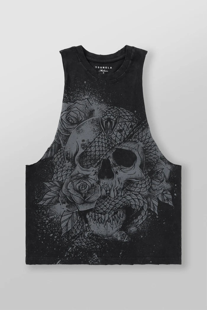 DISEÑO: LIBERA TU LADO MÁS SALVAJE CON NUESTRA CAMISETA DE TIRANTES, QUE LUCE UN LLAMATIVO ESTAMPADO DE SERPIENTE Y CALAVERA. DISEÑADA CON EL MISMO AJUSTE QUE LA CAMISETA DE TIRANTES PARA DELTOIDES DE YOUNGLA, OFRECE UNA COMODIDAD ÓPTIMA Y LIBERTAD DE MOVIMIENTO, PERFECTA PARA EL GIMNASIO.