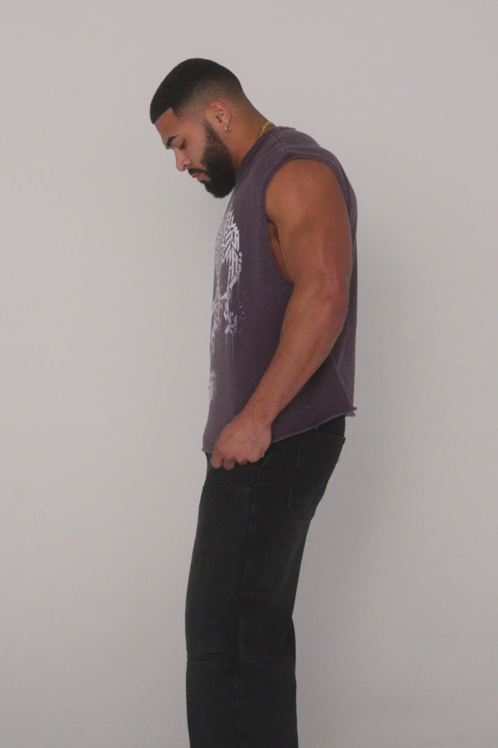 DISEÑO: UNA AUDAZ FUSIÓN DE VANGUARDIA Y ARTE, LA PRENDA CUT-OFF ESTÁ CONFECCIONADA EN 100 % ALGODÓN FLAMEADO DE 290 G/M² DE ALTO GRAMAJE, OFRECIENDO DURABILIDAD Y UN TACTO PREMIUM. CON MANGAS Y DOBLADILLO INFERIOR SIN REMATAR, ESTA PRENDA OFRECE UN ESTILO ROBUSTO.