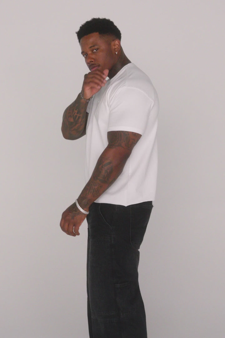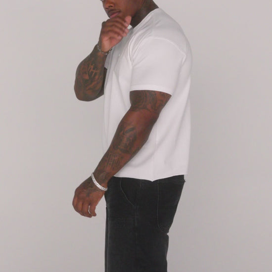 DISEÑO: UNA PRENDA BÁSICA Y ELEGANTE, IDEAL PARA EL DÍA A DÍA. ESTA CAMISETA ENTALLADA PRESENTA UNA SILUETA CORTA Y ENTALLADA CON UN DETALLE MINIMALISTA DE LA MARCA EN EL PECHO. ELEGANTE, SENCILLA Y DISEÑADA PARA REALZAR TU ESTILO DIARIO.
