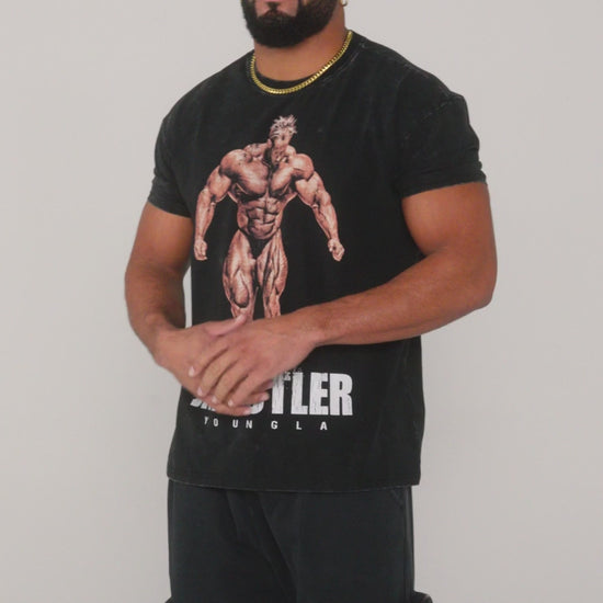DISEÑO: UNA CAMISETA CON UN GRÁFICO EXCLUSIVO, CREADA EN COLABORACIÓN CON JAY CUTLER, CUATRO VECES MR. OLYMPIA. CONFECCIONADA EN ALGODÓN SUAVE DE GRAMAJE MEDIO, CON UN CORTE AJUSTADO QUE SE AJUSTA PERFECTAMENTE AL PECHO Y A LOS BRAZOS. CADA CAMISETA PRESENTA UN LLAMATIVO GRÁFICO FRONTAL QUE MUESTRA A JAY CUTLER EN SU ÉPOCA DE MÁXIMO ESPLENDOR, CON DETALLES DESGASTADOS Y UN ACABADO LAVADO QUE LE DA UN ASPECTO VINTAGE Y DESGASTADO. EL CLÁSICO CUELLO REDONDO Y LAS COSTURAS REFORZADAS MANTIENEN LA FORMA.