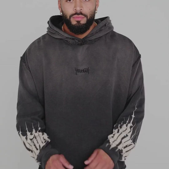 DISEÑO: MEJORA TU ESTILO CON ESTA PRENDA DESTACADA, CONFECCIONADA CON UN ALGODÓN DURADERO DE 345 G/M² PARA UNA SENSACIÓN DE PESO PESADO. EL DOBLADILLO Y LOS PUÑOS SIN REMATAR LE DAN UN AIRE VANGUARDISTA Y SIN REMATAR, COMPLEMENTADO CON LLAMATIVOS GRÁFICOS EN LAS MANGAS Y UN SUTIL LOGOTIPO DE YOUNGLA BORDADO.